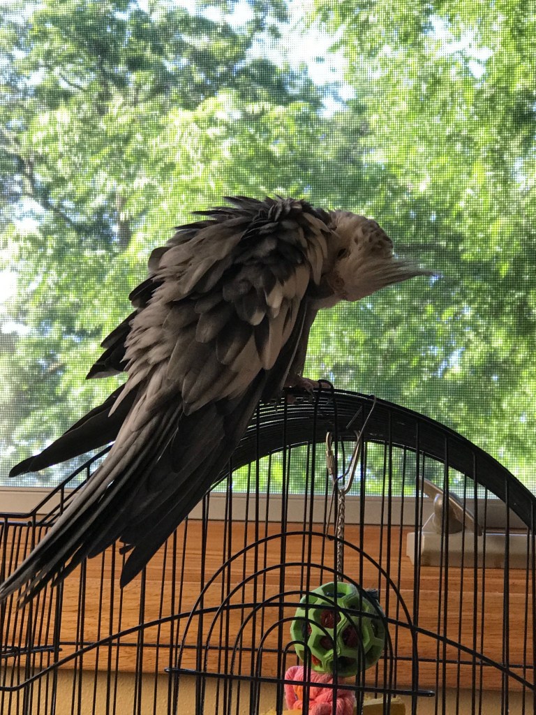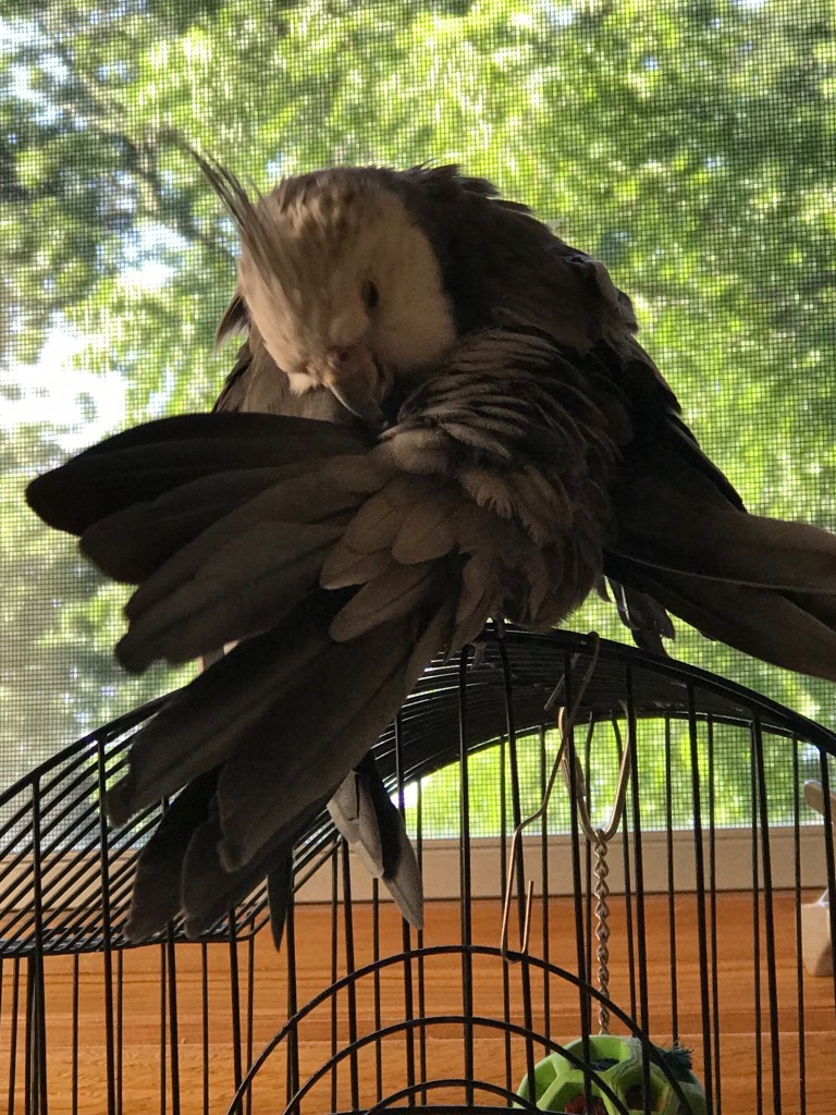 There she goes with Google again! One time she read cockatiels liked being misted. Not THIS cockatiel. I dodged the spray bottle for weeks before she got the hint.