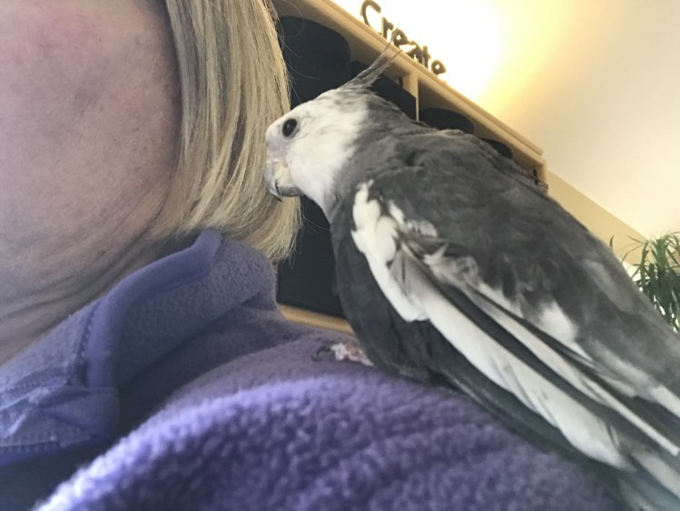 I climbed down from my writing nest and made my way up Momanita’s arm to her shoulder. I pecked at her earring and nuzzled her neck.