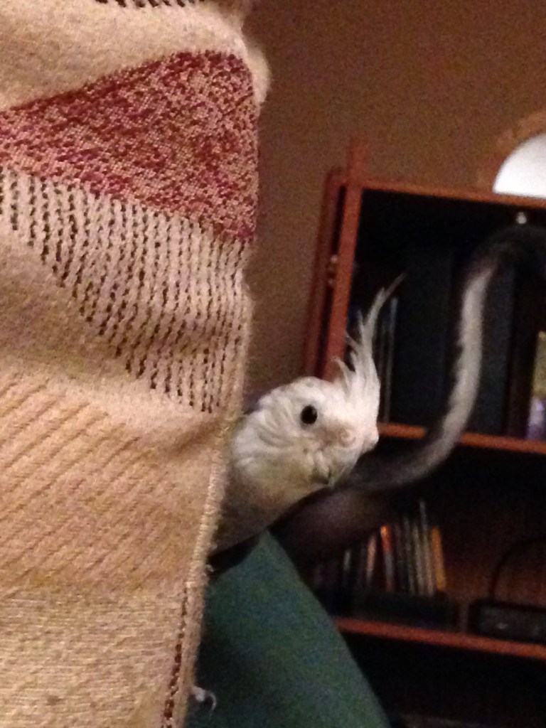 “Good morning, Squeaky,“ said Momanita as she tugged off the blue cover on my rolly home. “It IS a good morning. It’s a good NOT EARLY morning.” To other hootmans this sounded like squeals and whistles, but not to Momanita. She MOSTLY understood cockatiel speak. I MOSTLY understood hootman talk. “I’m late because Red needed…